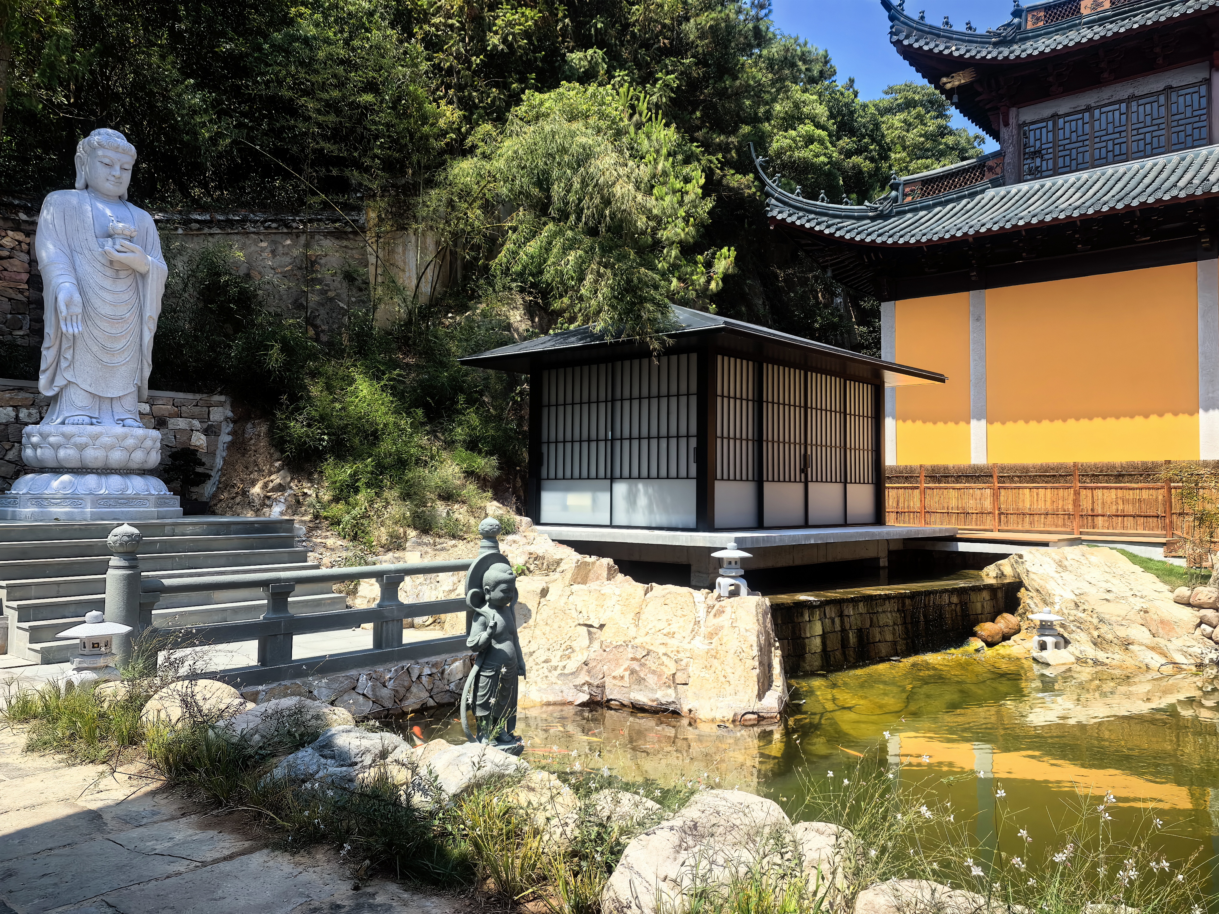 弥陀寺全称为“弥陀净寺”,据有关史籍记载,弥陀寺始建于南北朝宋文帝时期,距今已有1500余年了,历史上曾做过多次修缮,如今的规模是1998年修缮的,占地面积22678平方米,由山门、厢房、天王殿、大雄宝殿、赵五娘庙等组成,为象山十八大寺院之一。